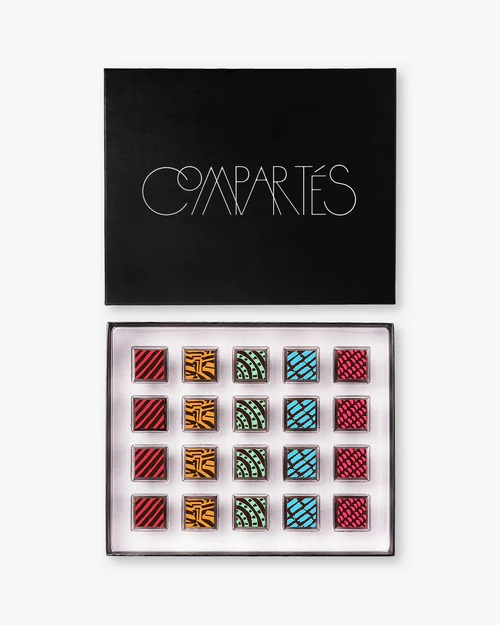 The Compartés 20-piece vegan chocolate gift box is made with 100 percent vegan chocolate and with 5 of the chocolatier's most popular vegan flavors: Original Dark, Passionfruit, Blackberry Sage, Cocoa Crunch, and Kona Coffee. This is the perfect gift for chocolate lovers. Handcrafted in Los Angeles.
