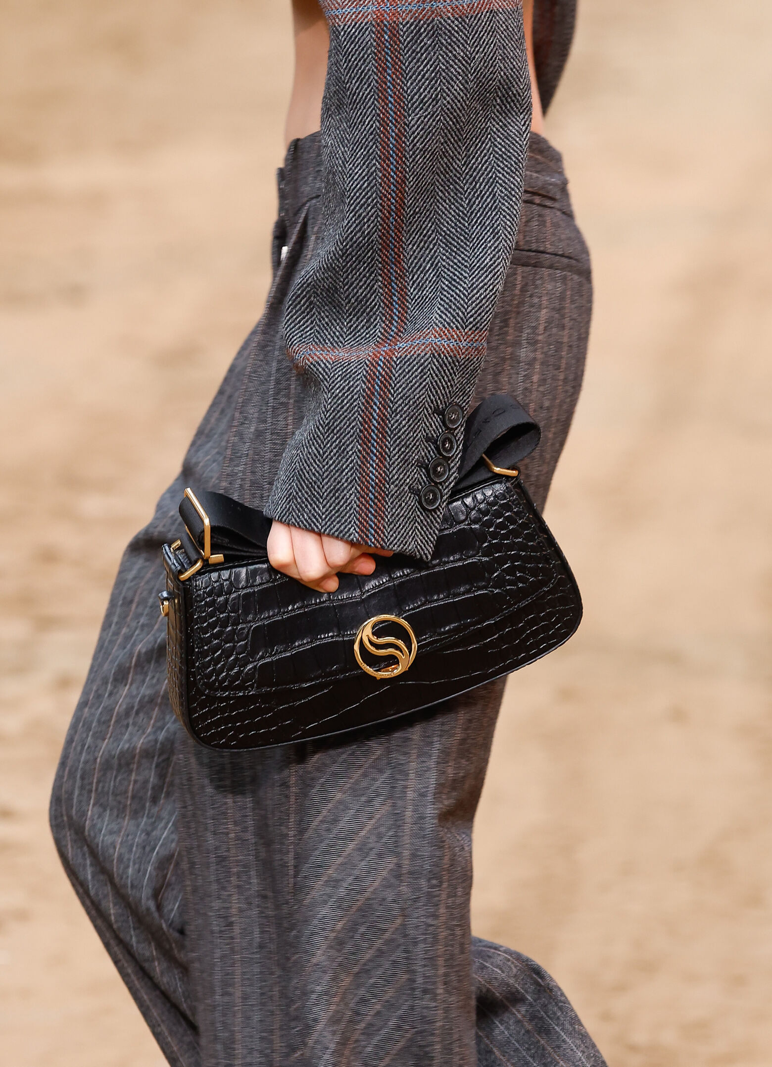 The material featured in the Stella McCartney Winter 2023 runway collection as the Frayme bag tote, bucket, and shoulder in the Alter Croc design, and in the Winter 2022 collection, which saw the S-Wave baguette bag, and as a wallet clutch last year. McCartney has explored alternative leather for the Frayme collection before, including the first-to-market mycelium mushroom leather bags.